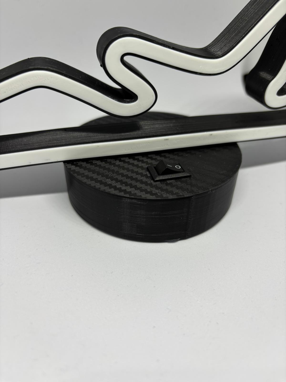 Lámpara decorativa con la silueta del histórico Circuito del Jarama, uno de los trazados más emblemáticos del automovilismo en España.