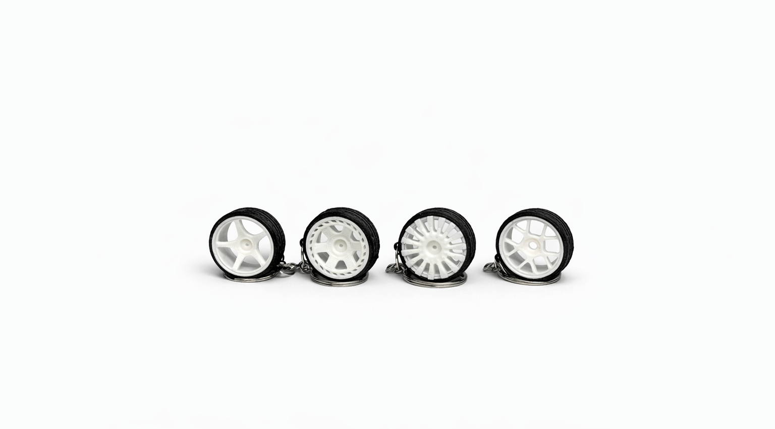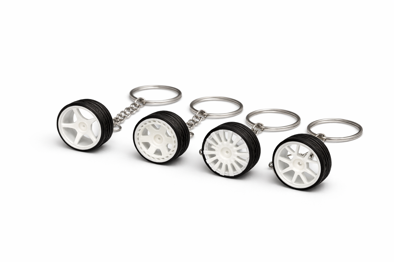 Cada llavero representa una llanta diferente, con acabados realistas y neumático en relieve, aportando un look auténtico y llamativo. Ideales como regalo original o complemento para tu día a día.